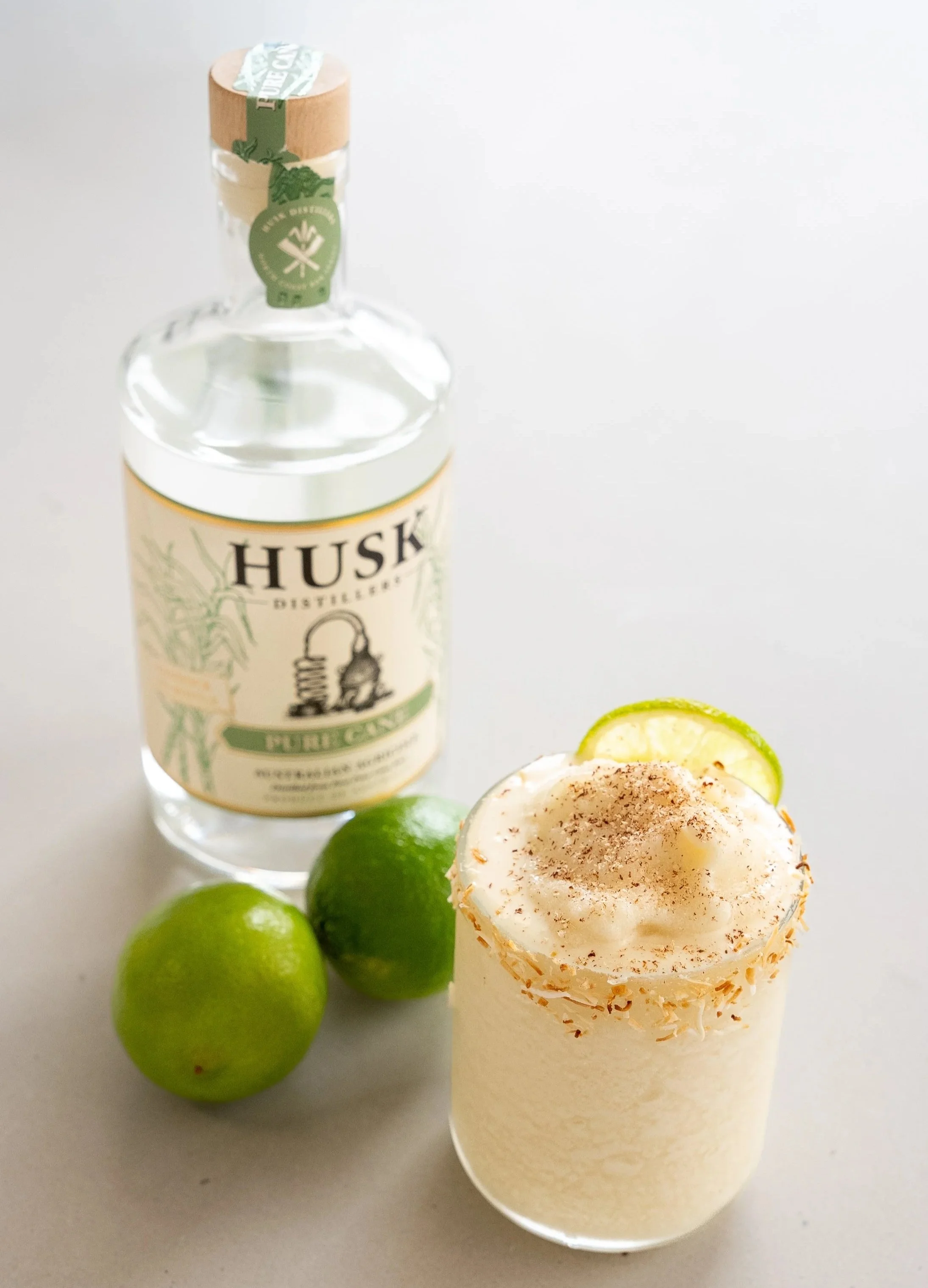 Step 1. Add the ice, Husk Pure Cane Spirit, passionfruit syrup, coconut milk, and lime juice to a blender.